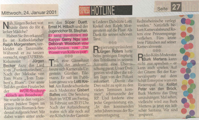 Kölsch Am Broadway - Express, 24 Jan. 2001