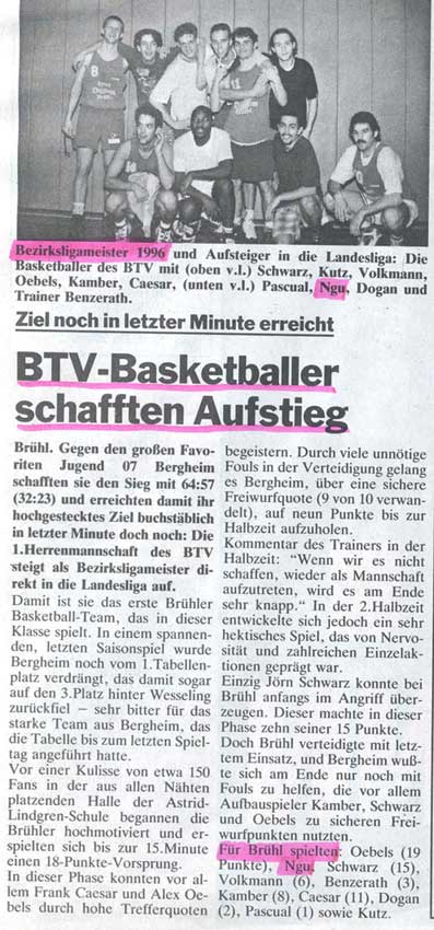 Basket ball - Meister, Brühler Schlossbote 17 April 1996